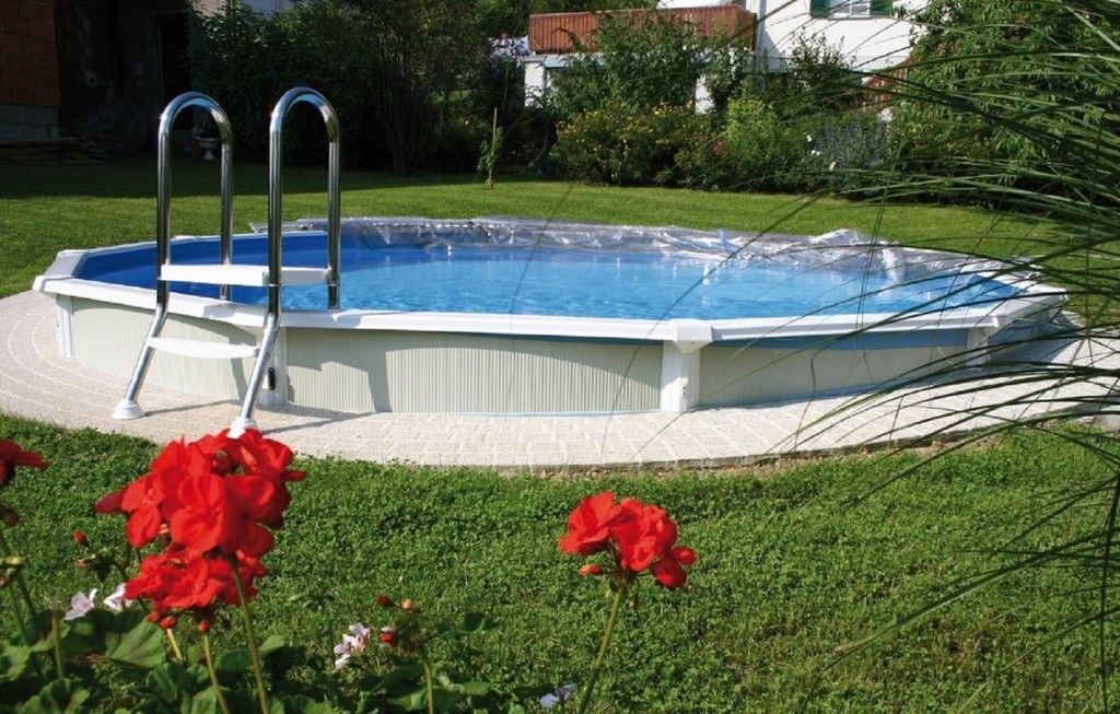 Pool bestehend aus robustem, verzinktem und beschichtetem Stahlmantel