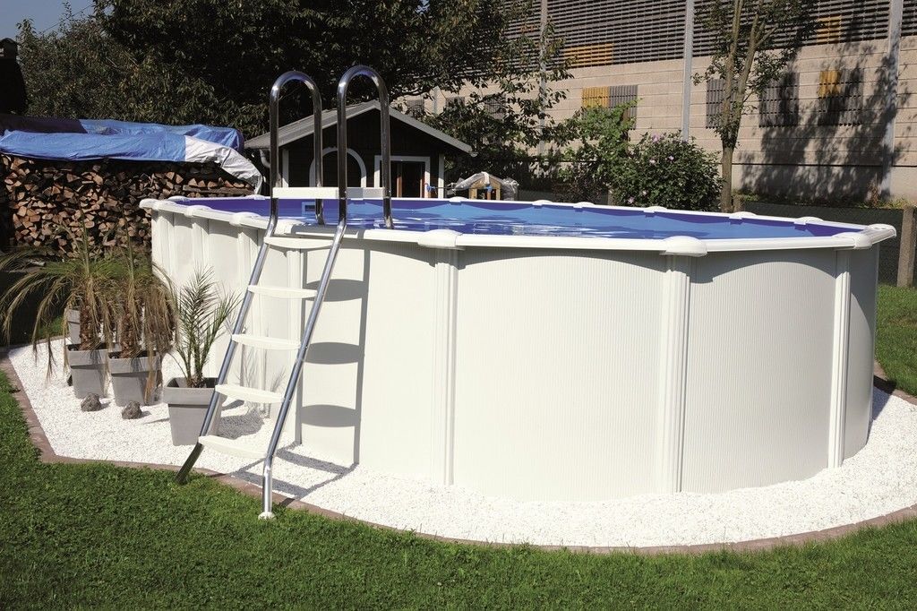 Pool bestehend aus robustem, verzinktem und beschichtetem Stahlmantel