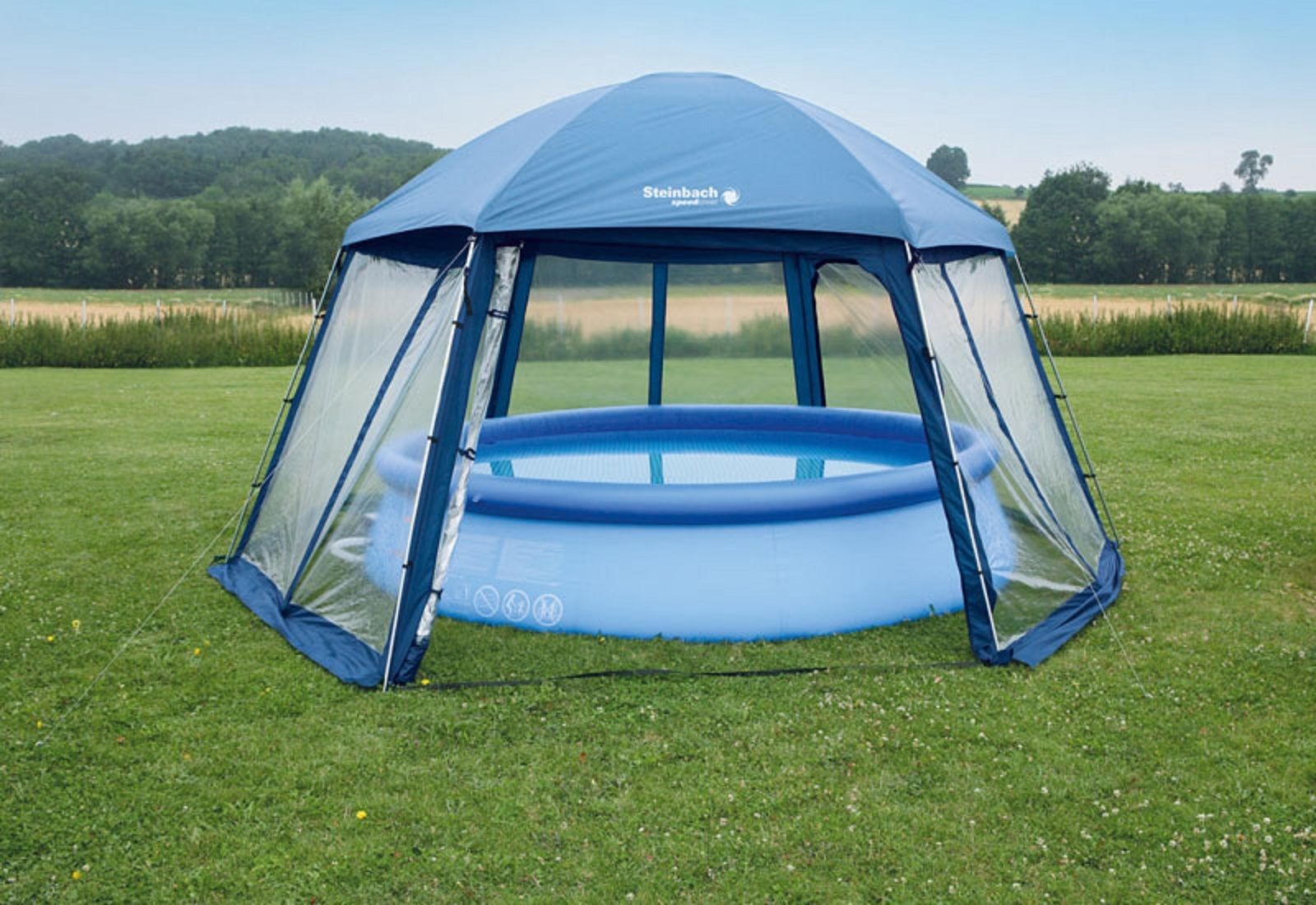 Das 500 x 433 x 250 cm große Pooldach ist individuell einsetzbar; als Sonnenschutz über dem Schwimmbad oder als Überdachung für Ihre Sitzgruppe. Der Aufbau ist schnell und einfach, das leichte Gewicht ermöglicht ein schnelles Umsetzen im montiertem Zustand.