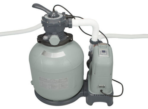 Sandfilter werden schon lange Zeit von Schwimmbadbesitzern als eine der besten Methoden angesehen, um ein klares, glitzerndes Schwimmbadwasser zu erhalten. Der komplett natürliche, günstige Sand leistet exzellente Arbeit beim Herausfiltern von Schmutzpartikeln im Wasser. Dadurch ist der Sandfilter die einfachste Filtermethode am Markt. Salzwassersysteme werden ebenfalls schon lange Zeit erfolgreich angewendet, um ein sauberes und sicheres Schwimmbadwasser zu erhalten, ohne dafür auf Methoden wie z.b. die traditionelle Chlorbehandlung ausweichen zu müssen. INTEX hat nun diese 2 exzellenten Systeme in einem Produkt kombiniert, welches den Besitzern von Aufstellbecken nun ermöglicht, ein kostengünstiges, pflegeleichtes System anzuwenden, um ein sauberes, klares und sicheres Schwimmbadwasser zu erhalten. Beide Systeme werden automatisch durch eine Zeitschaltuhr kontrolliert und garantieren somit eine sorglose und einfache Anwendung.
