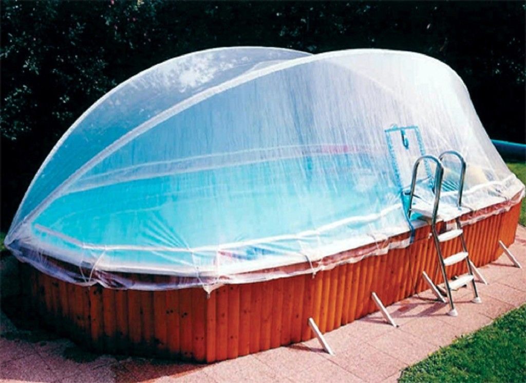 Der Cabrio Dome wird bei freistehenden Becken an der Stahlwand verklemmt, bei eingebauten Becken am Untergrund daneben festgeschraubt. Bohrungen an der Stahlwand sind nicht nötig.