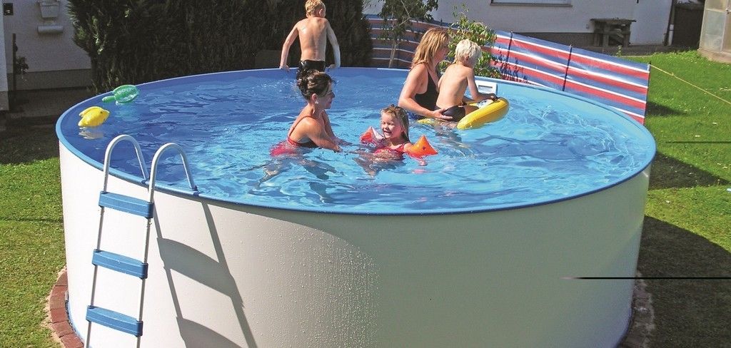 Das Rundbecken mit 1,20 m Beckentiefe kann freistehend, teilversenkt oder vollständig versenkt aufgestellt werden.