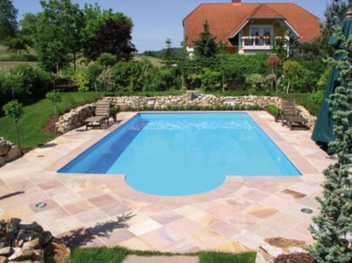 Das Rechteckbecken wird aus handlichen Styropor-Systembausteinen auf einer bauseits bereits vorhandenen Betonplatte aufgebaut und mit Beton ausgegossen.