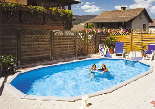 Pools der Serie Oval verfügen über eine seitliche Stützkonstruktion. Eine freistehende Montage oder Erdeinbau sind möglich. Beachten Sie die Einbauhinweise.