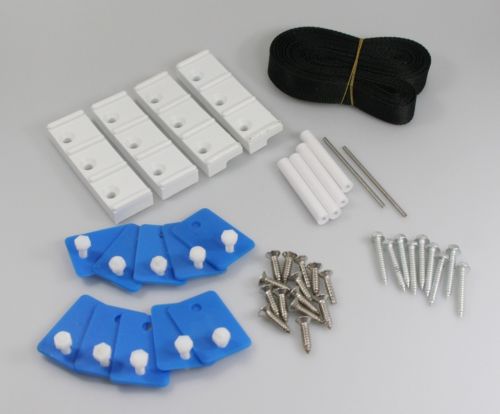 Einfach Zurrgurte am Aufroller befestigen und Solarplane mit den mitgelieferten Befestigungsteilen, PVC Schrauben und Muttern an den Zurrgurten fest machen.