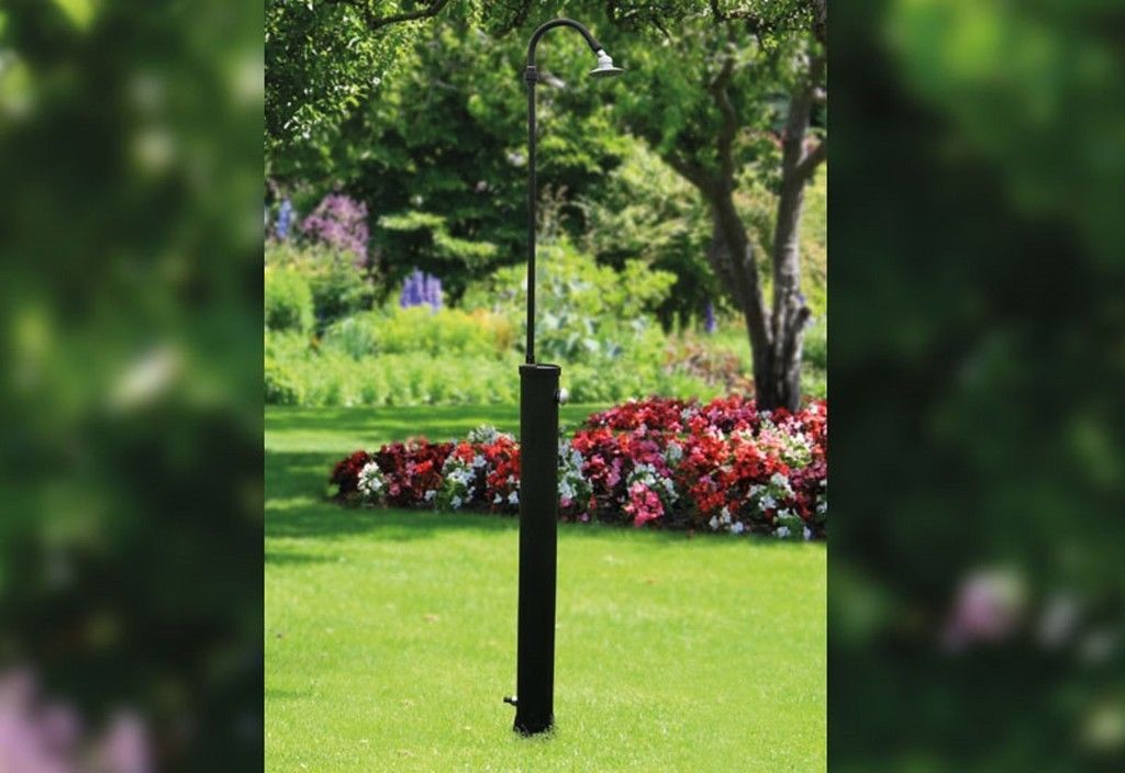 Die Dusche verfügt über ein Fassungsvermögen von 9 Litern Warmwasser (ausreichend für bis zu 5 Badegäste und den ganzen Tag über erneuerbar) und lässt sich sehr einfach im Garten oder in der Nähe eines Schwimmbeckens installieren.